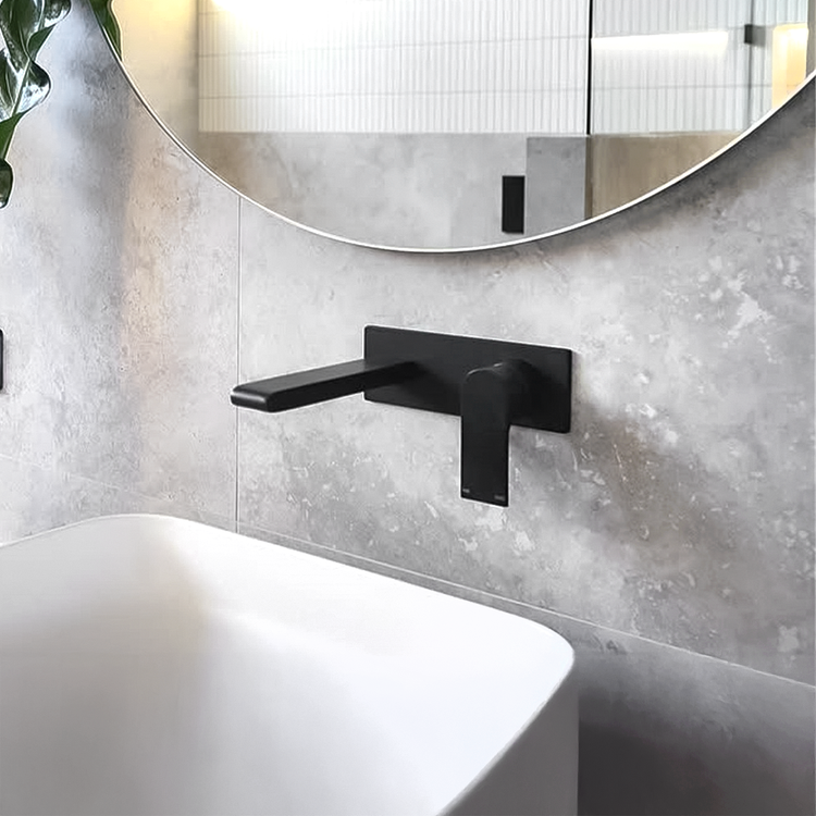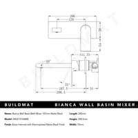 Nero Bianca Wall Basin/Bath Mixer 187mm Matte Black