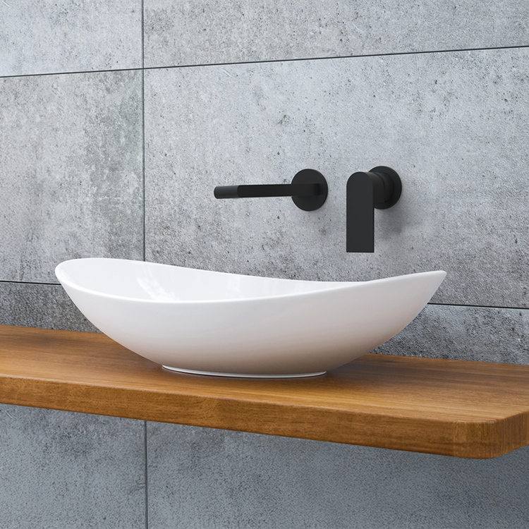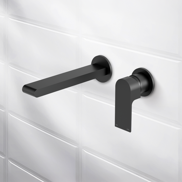 Nero Bianca Wall Basin/Bath Mixer Separate Back Plate 230mm Matte Black