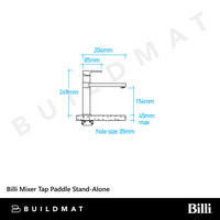 Billi Mixer Tap Paddle Stand-Alone Matte White