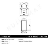 Alma 32mm Black Pop Up Waste