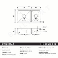 Brushed Brass Gold Lincoln 825x450 Single +3/4 Bowl Sink