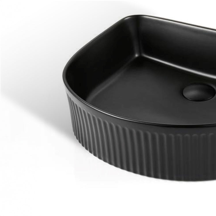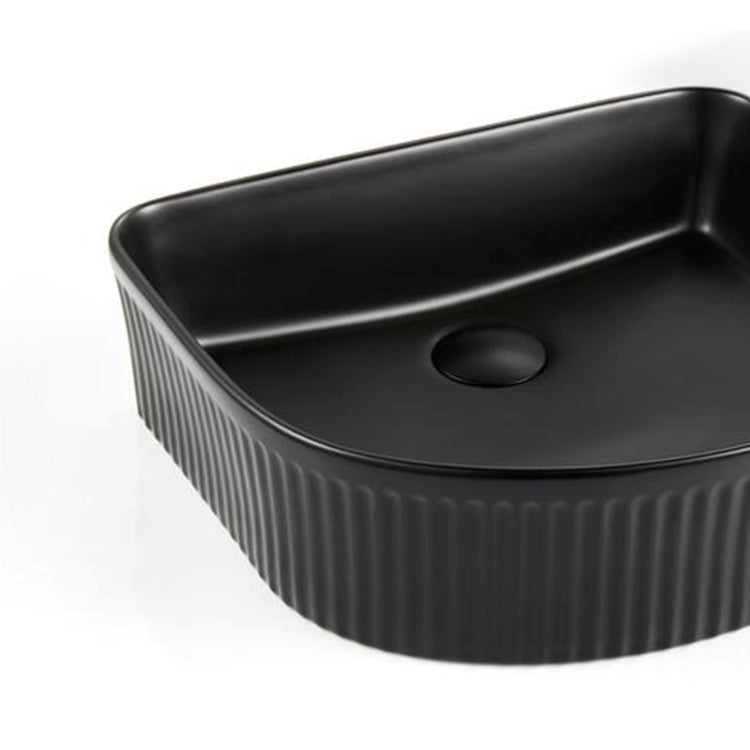 Above Counter Arch Basin Size: 415 x 365 x 120mmMaterial: Ceramic Basin Product Code: BMCA4135AR-MBFinish Colour: Matte BlackNon-Overflow Note: Plug & Waste sold separately Read more