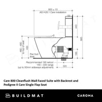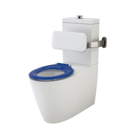 Caroma Care 800 Cleanflush Wall Faced with Backrest and Pedigree II Care Single Flap Seat with GermGard Sorrento Blue