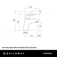 Caroma Care Plus Basin Mixer Standard Handle H/C Lead Free Chrome