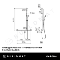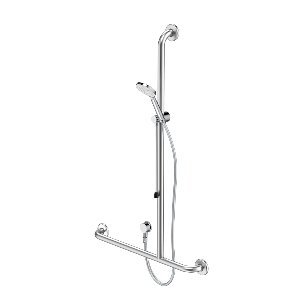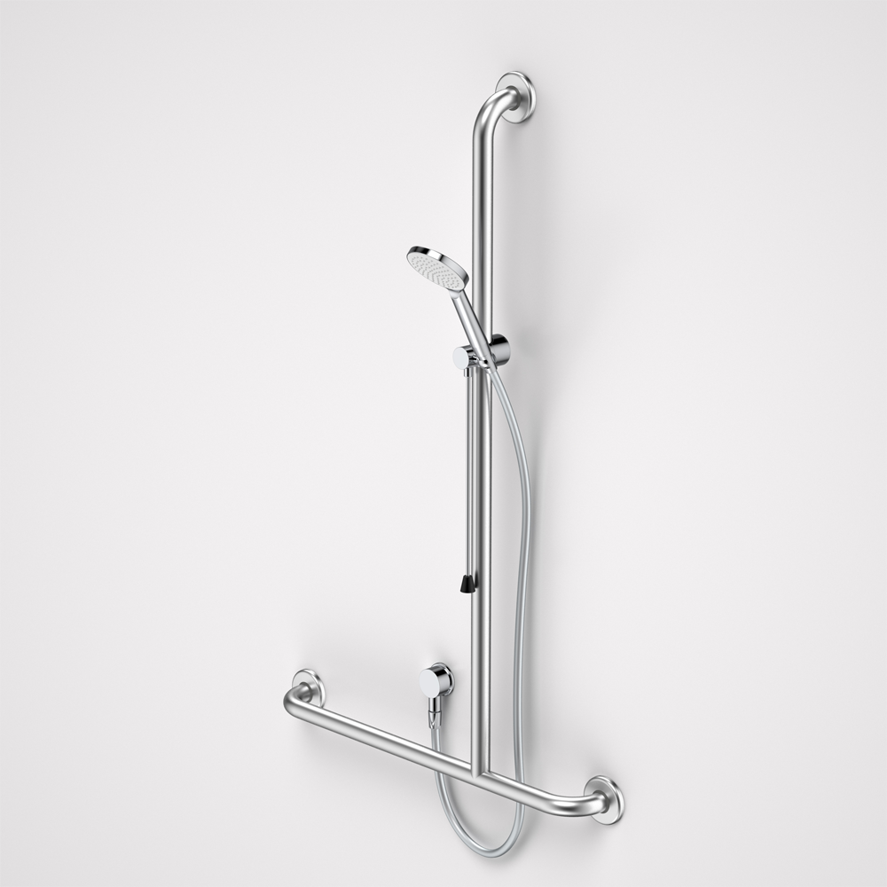 Caroma Care Support Accessible Shower Set with Inverted T Rail Right Hand Side Chrome