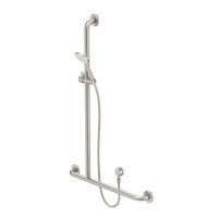 Caroma Care Support Shower Set with Inverted T Rail Left Hand Side Brushed Nickel