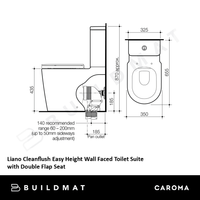 Caroma Liano Cleanflush Easy Height Wall Faced Toilet Suite with Double Flap Seat White