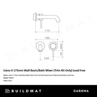 Caroma Liano II 175mm Wall Basin/Bath Mixer (Trim Kit Only) Lead Free Brushed Brass