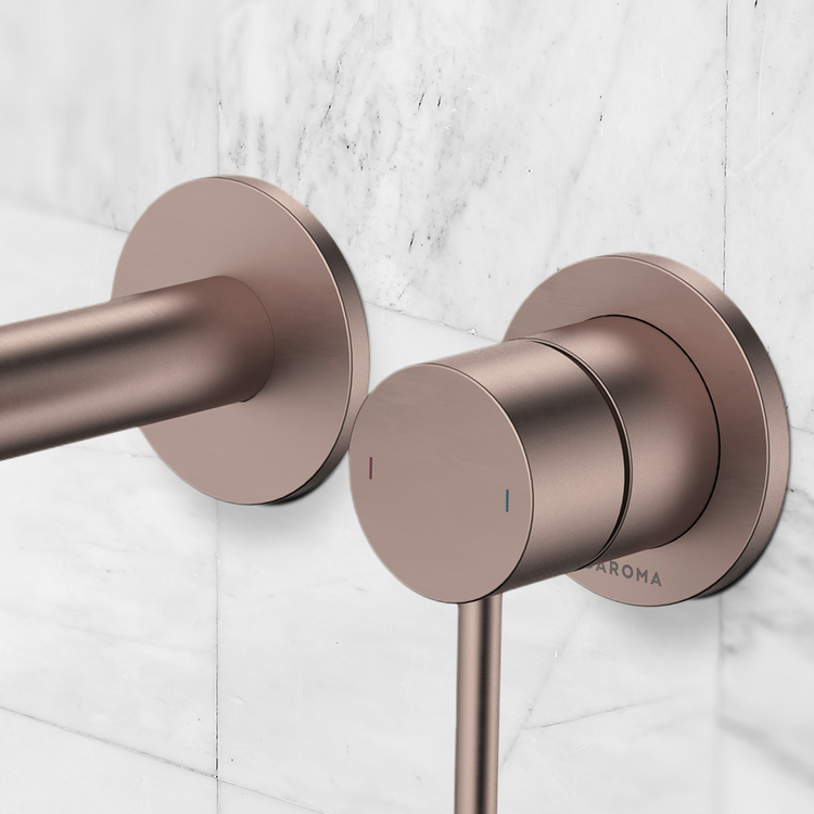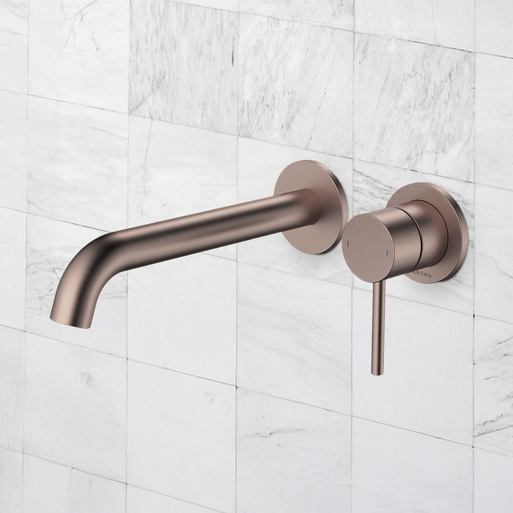 Caroma Liano II 210mm Wall Basin/Bath Mixer and Outlet Lead Free Brushed Bronze