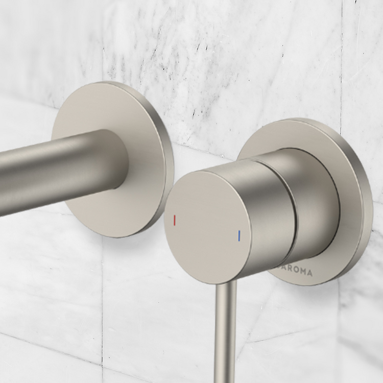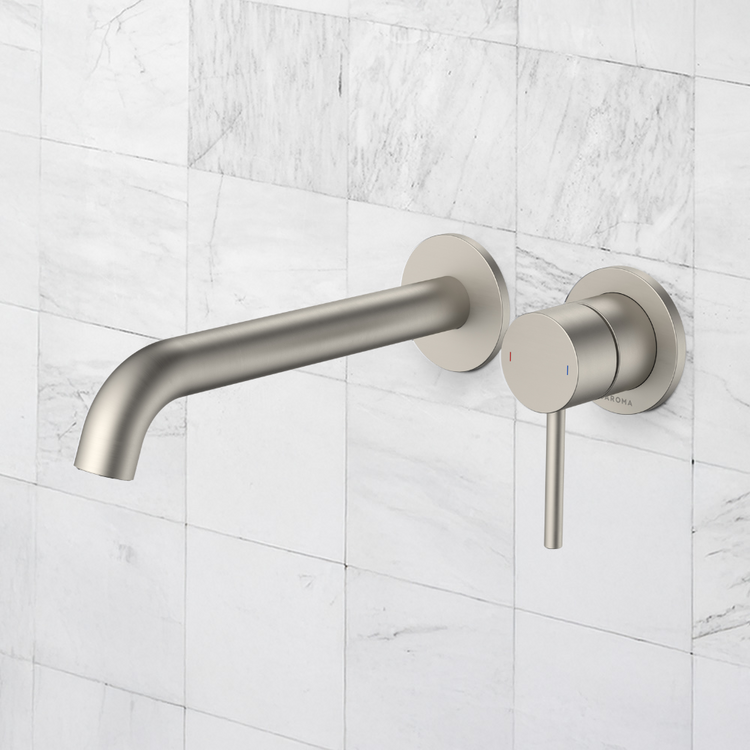 Caroma Liano II 210mm Wall Basin/Bath Mixer and Outlet Lead Free Brushed Nickel