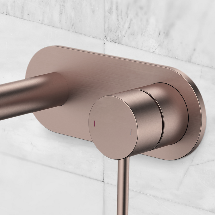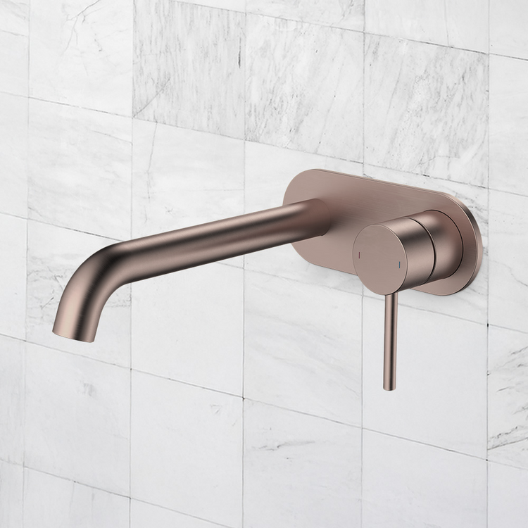 Caroma Liano II 210mm Wall Basin/Bath Mixer and Outlet Rounded Plate Lead Free Brushed Bronze