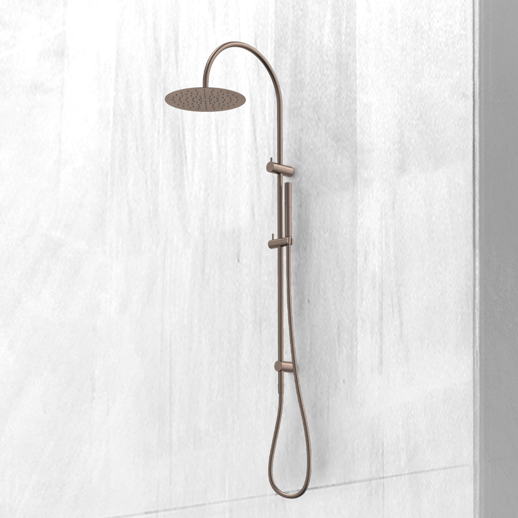 Caroma Liano II 3 Function Microphone Rail Shower with Overhead Brushed Bronze