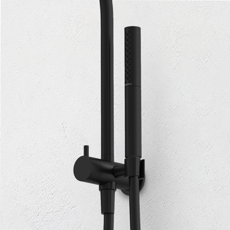 Caroma Liano II Compact Twin Shower with Overhead Matte Black