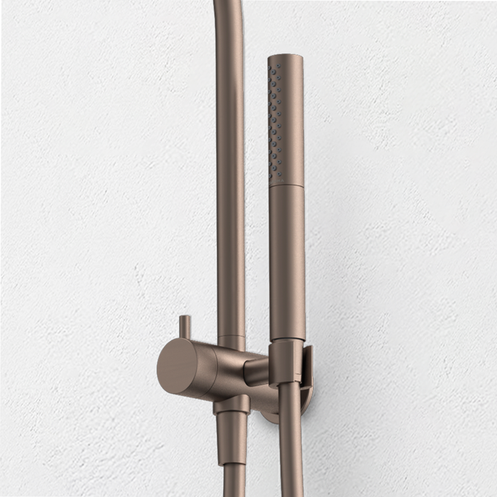 Caroma Liano II Compact Twin Shower with Overhead Brushed Bronze