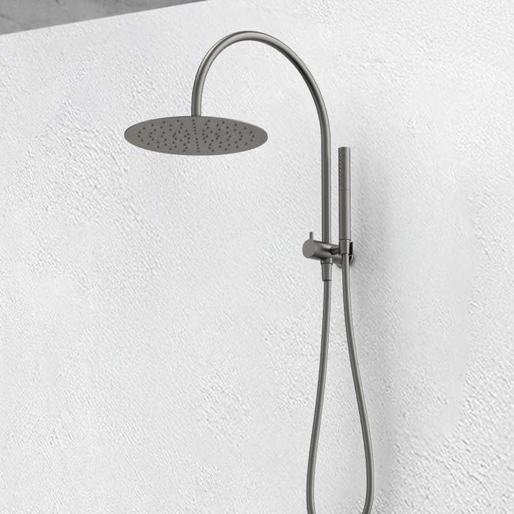Caroma Liano II Compact Twin Shower with Overhead Gunmetal