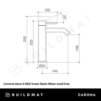 Caroma Liano II Mid Tower Basin Mixer Lead Free Brushed Bronze