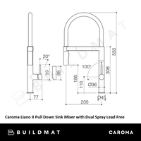 Caroma Liano II Pull Down Sink Mixer with Dual Spray Brushed Bronze Lead Free