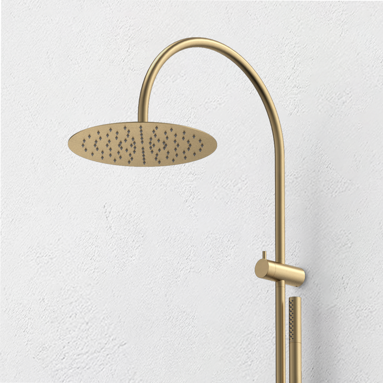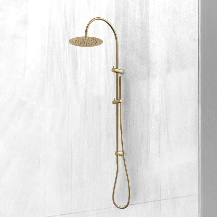Caroma Liano II Rail Shower with Overhead Brushed Brass