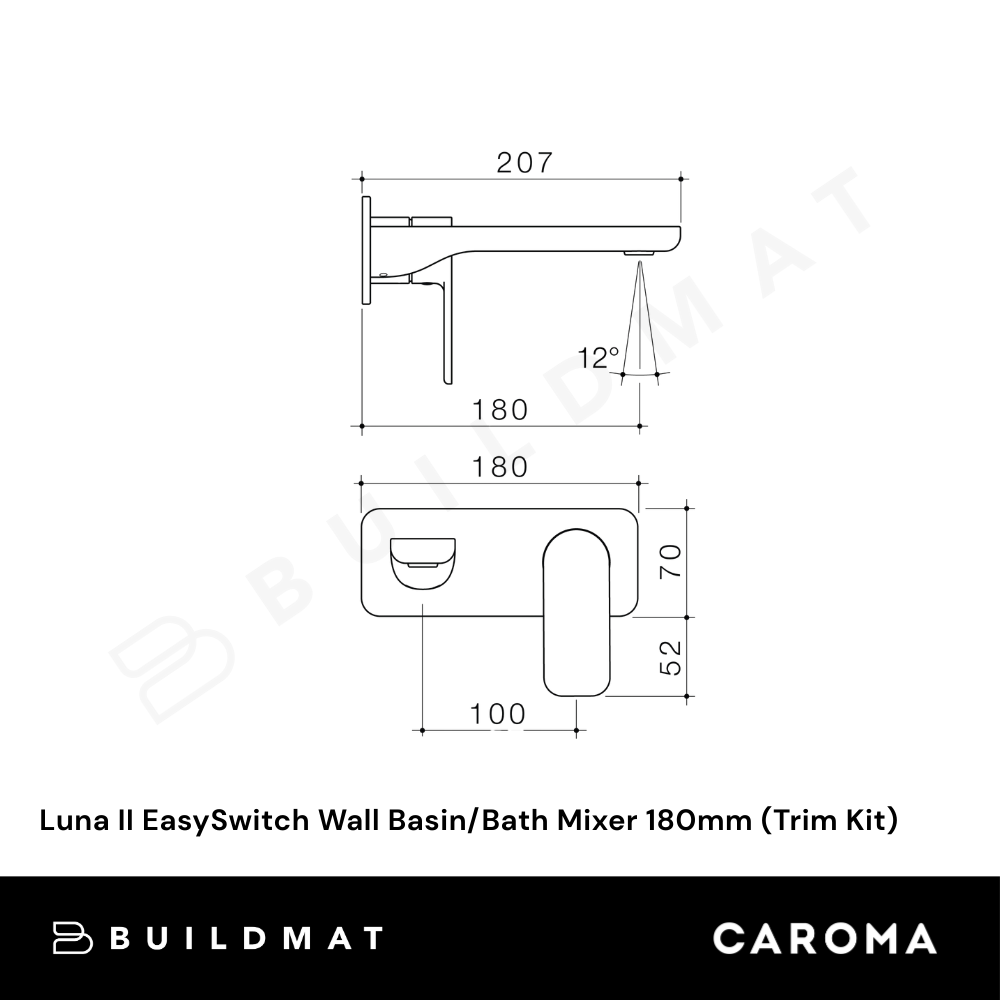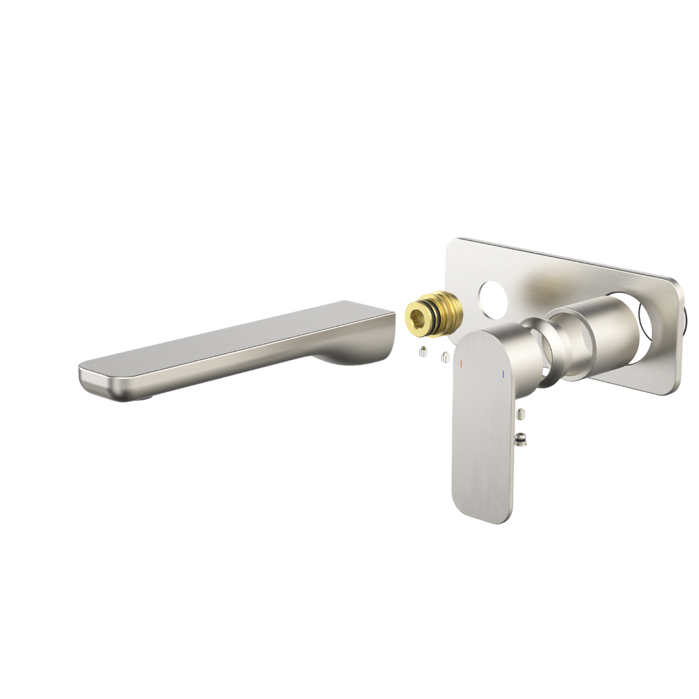 Caroma Luna II EasySwitch Wall Basin/Bath Mixer 180mm (Trim Kit) Brushed Nickel