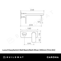 Caroma Luna II EasySwitch Wall Basin/Bath Mixer 220mm (Trim Kit) Chrome