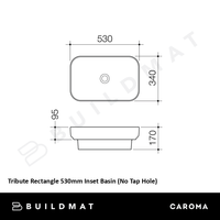 Caroma Tribute Rectangle 530mm Inset Basin (No Tap Hole) White
