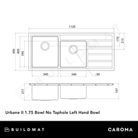 Caroma Urbane II 1.75 Bowl No Taphole Left Hand Bowl Stainless Steel