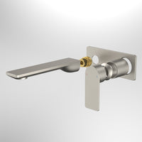 Caroma Urbane II 180mm Wall Basin/Bath Mixer with Rectangular Plate (Trim Kit Only) Lead Free Brushed Nickel