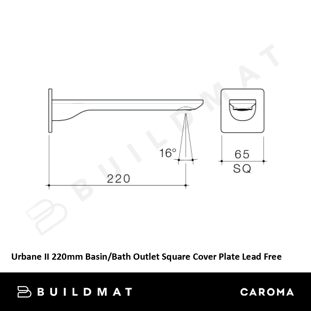 Caroma Urbane II 220mm Basin/Bath Outlet Square Cover Plate Matte Black Lead Free
