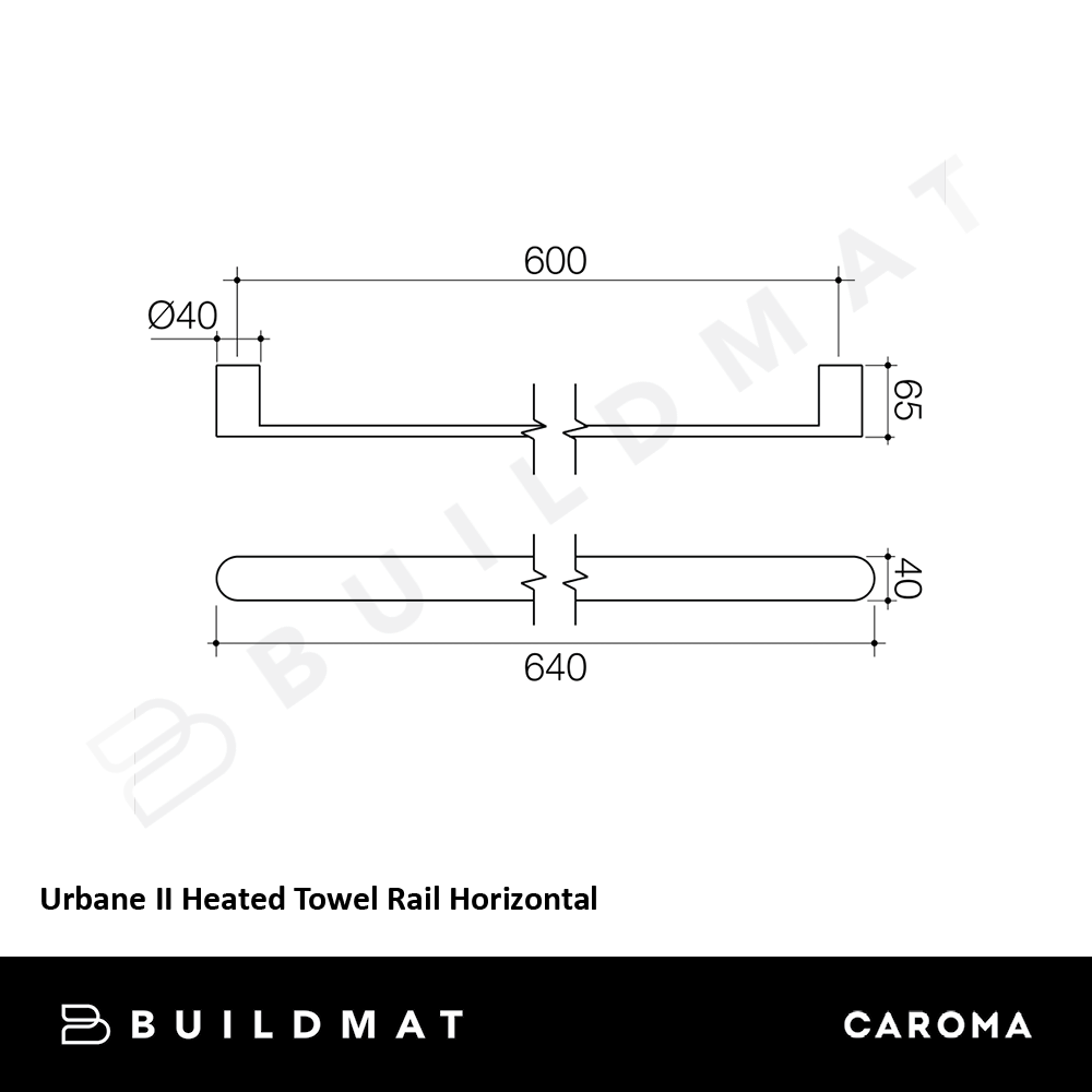 Caroma Urbane II Heated Towel Rail Horizontal Matte Black