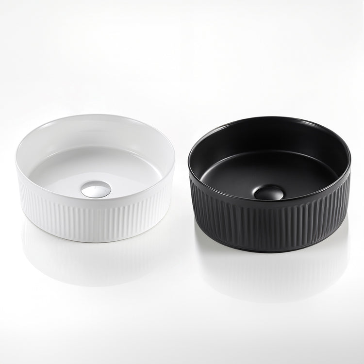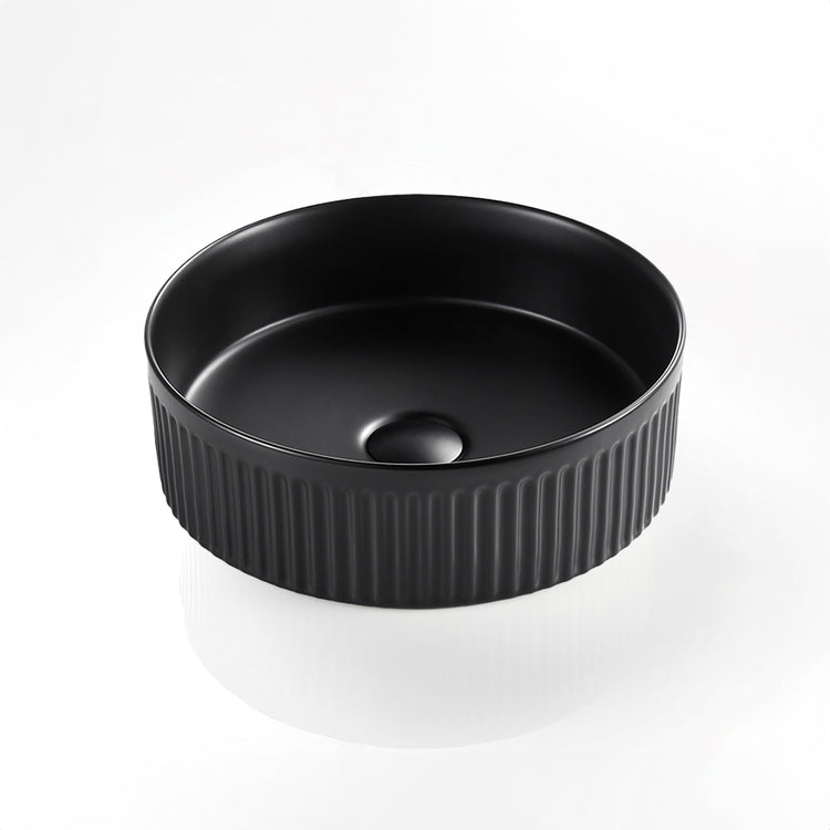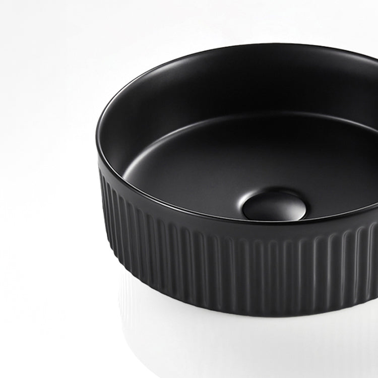 Round Above Counter Basin Size: 410 x 410 x 120mmWaste: 32mm non-overflow Material: Ceramic Basin Product Code: CA410R-MBFinish Colour: Matte Black Note: plug and waste sold separately Read more