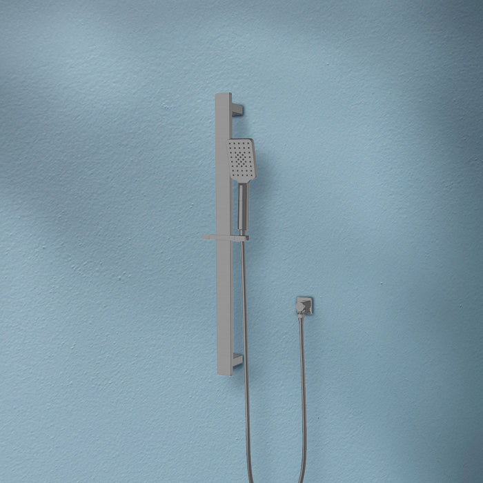 Product Type: Rail ShowerProduct SKU: NR316GMColour: Gun MetalMaterial: BrassWELS Rating: 6.0L/min, 5StarWELS Registration No: S15610 Features High quality solid metal rail 3 function handset Exposure square rail Strong and durable flexible hose Height adjustable... Read more