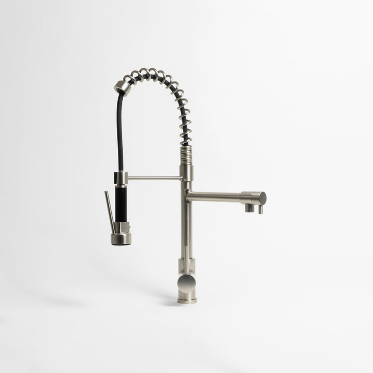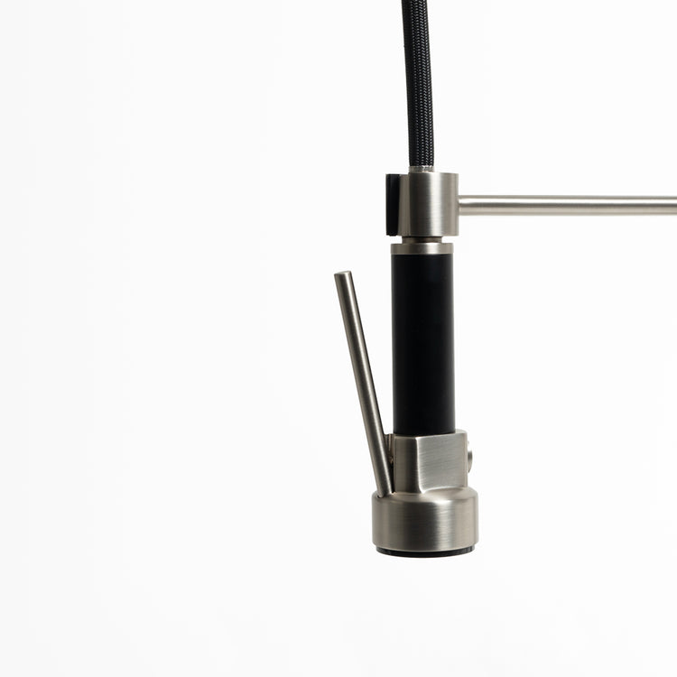 WELS Rating: 6L/Min, 5Star Ceramic cartridge disk Brushed Nickel Finish Black Handle with Spray Trigger Height 585mm Dual Spout function Pull out Spray Nozzle - 204mm width Swivel spout - 200mm width... Read more