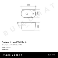 The Caroma Contura II Hand Wall Basin is designed to bring elegance into compact spaces. With its integrated ceramic shroud and slim rim profile, it delivers a modern statement while remaining practical for everyday use. Made from premium ceramic with a smooth, stain-resistant surface, this Australian–designed basin is built for long-lasting durability and comes in gloss white, matte white, or matte clay finishes.