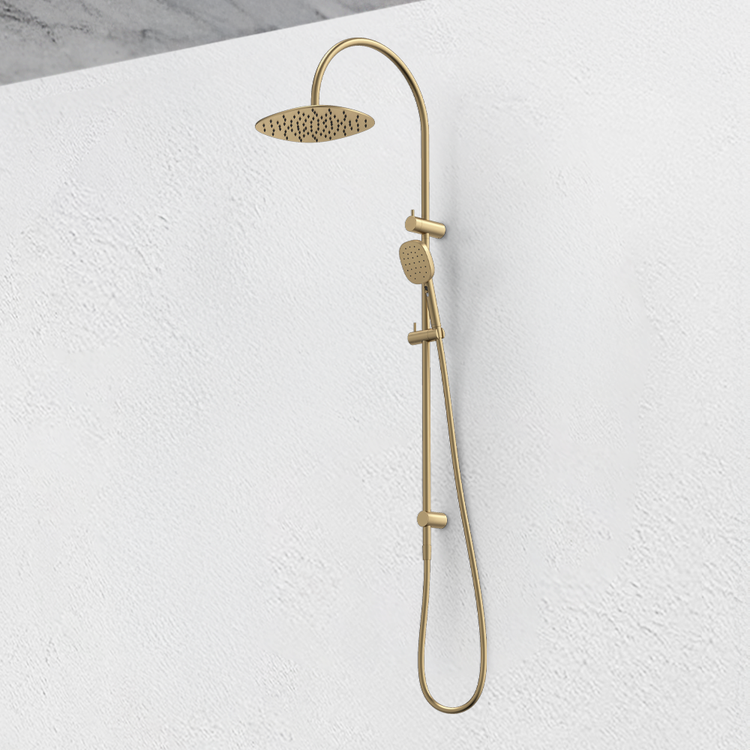 Caroma Contura II Rail Shower with Overhead Brushed Brass