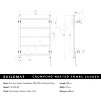 Phoenix Cromford Heated Towel Ladder 550x750mm Brushed Nickel