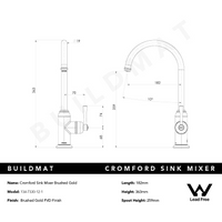 Phoenix Cromford Sink Mixer Lead Free Brushed Gold