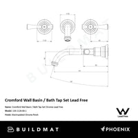 Phoenix Cromford Wall Basin / Bath Tap Set Chrome Lead Free