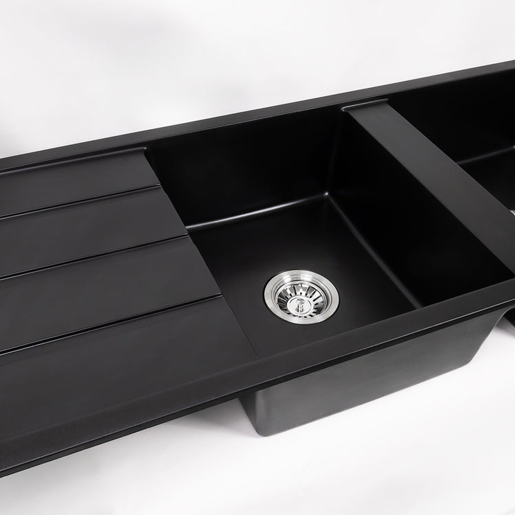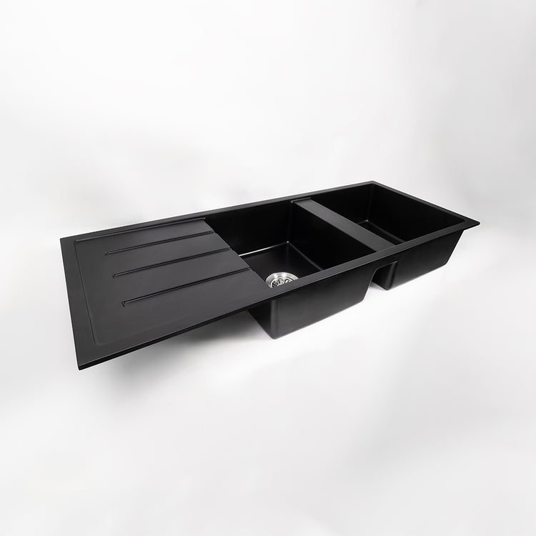 Darlene 1200x500 Black Granite Drainboard Double Bowl Sink