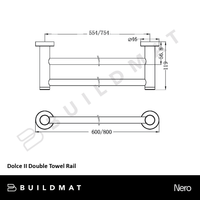 Nero Dolce II Double Towel Rail 600mm Chrome