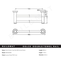 Nero Dolce Double Towel Rail 800mm Brushed Nickel