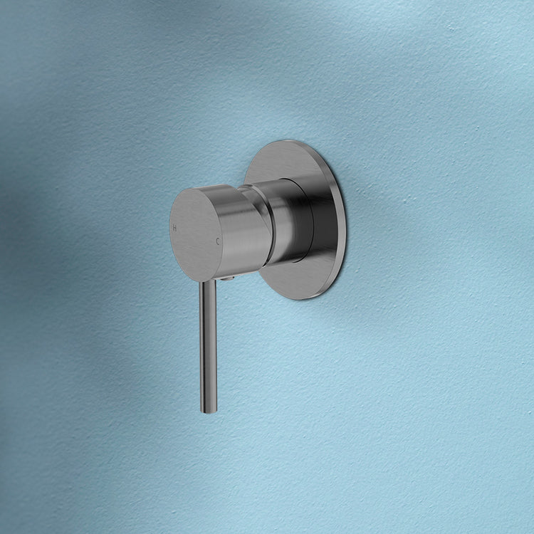 Product Type: Shower MixersProduct SKU: NR250811GMColour: Brushed GunmetalMaterial: Brass 35mm ceramic cartridge can be adjusted to control water temperature and flow control setting, saving energy Metal wall plate construction for longevity... Read more