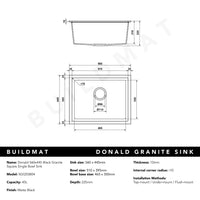 Donald 560x445 Black Granite Square Single Bowl Sink