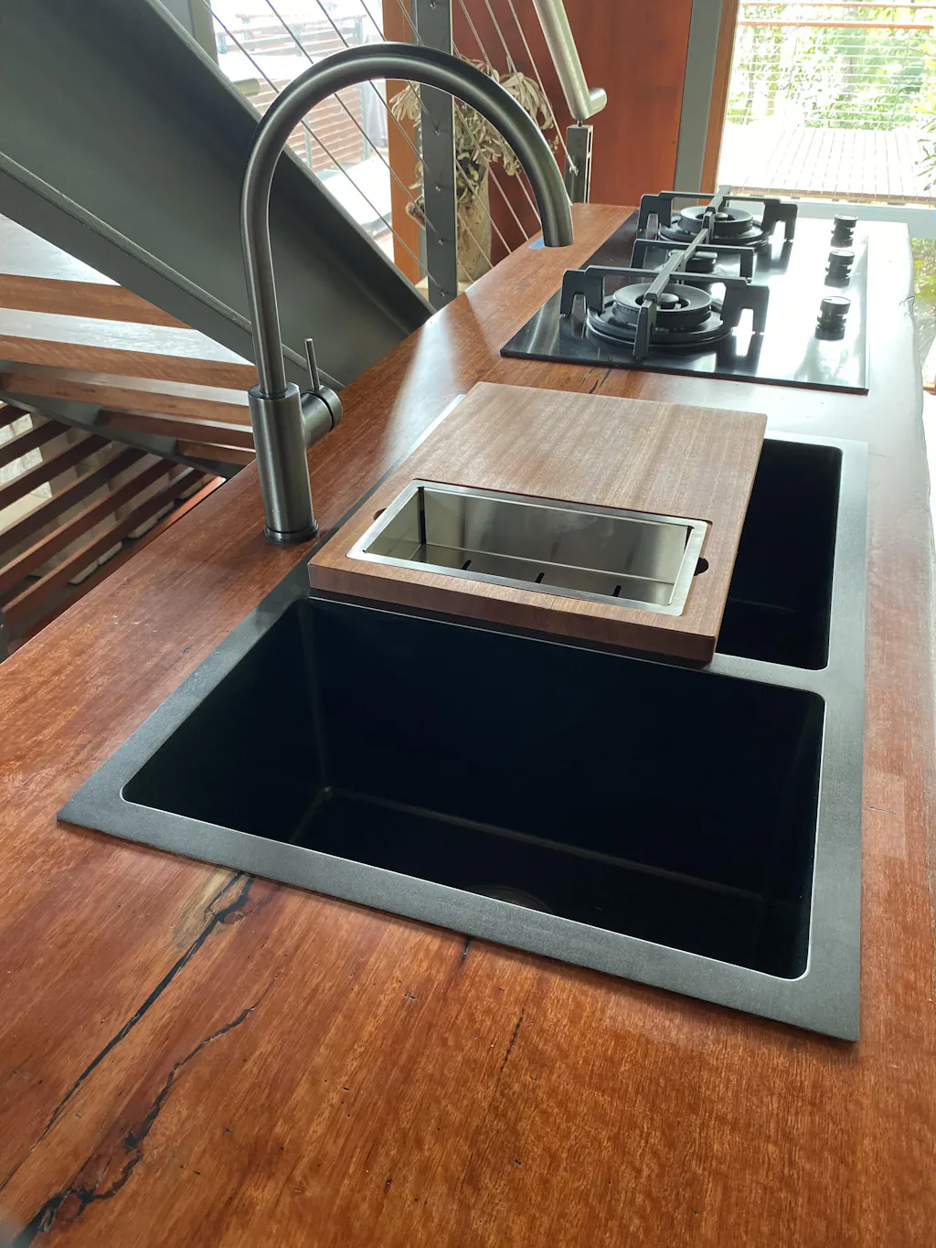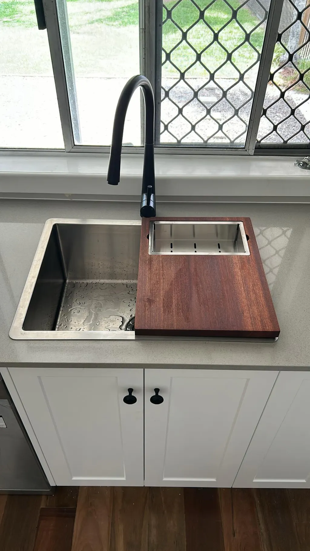 The Emma Chopping Board and Integrated Colander Combo was designed to fit perfectly with our 450 width sinks.