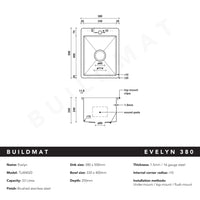 Evelyn 380x500 Single Bowl Tap Landing Sink