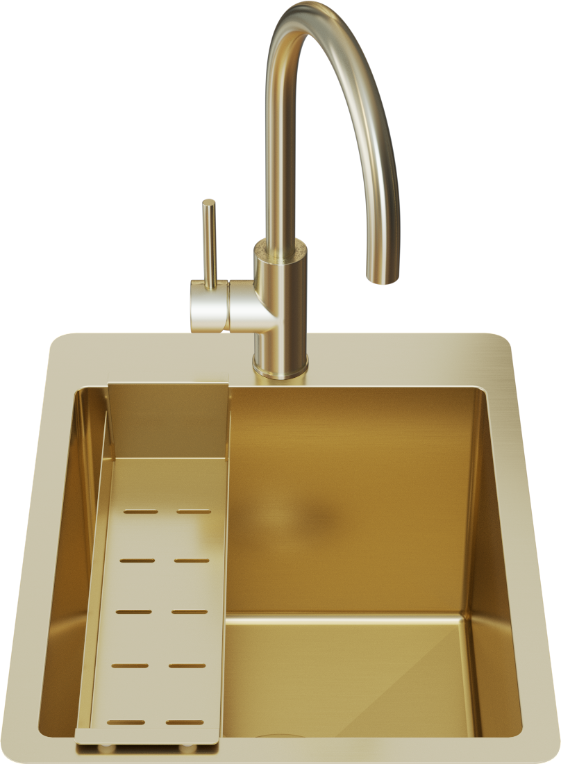 Evelyn 380x500 Single Bowl Tap Landing Sink Brushed Brass Gold