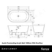 Fienza Austin Freestanding Acrylic Bath 1400mm with Overflow Gloss White