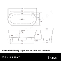 Fienza Austin Freestanding Acrylic Bath 1700mm with Overflow Gloss White