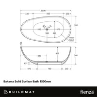 Fienza Bahama Solid Surface Bath 1500mm with Overflow Matte White