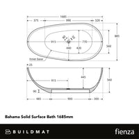 Fienza Bahama Solid Surface Bath 1685mm Matte White