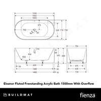 Fienza Eleanor Fluted Freestanding Acrylic Bath 1500mm with Overflow Gloss White